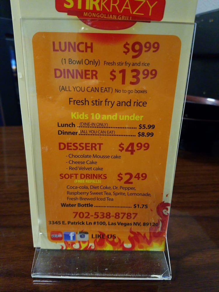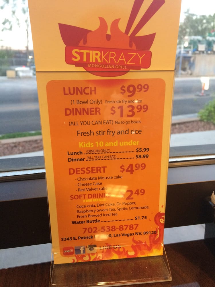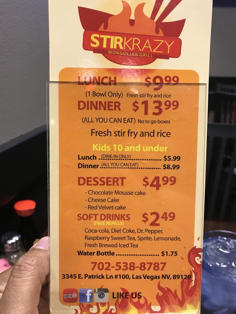 Stir Krazy Mongolian Grill is a vibrant Asian fusion restaurant located in Las Vegas, offering a unique self-serve, build-your-own noodle experience. The menu features a variety of proteins, vegetables, and sauces for customers to create their personalized bowls. Customers rave about the freshness of ingredients and the interactive cooking process, where your concoction is stir-fried on a large griddle. With options for vegans, vegetarians, and meat-lovers alike, there is something for everyone at this casual and welcoming spot. The hostess guides newcomers through the process, ensuring a seamless dining experience. Prices are reasonable, and the portions are generous – leaving many customers with leftovers for the next day. Overall, Stir Krazy Mongolian Grill provides a fun and tasty dining experience, perfect for a quick lunch or a leisurely dinner.